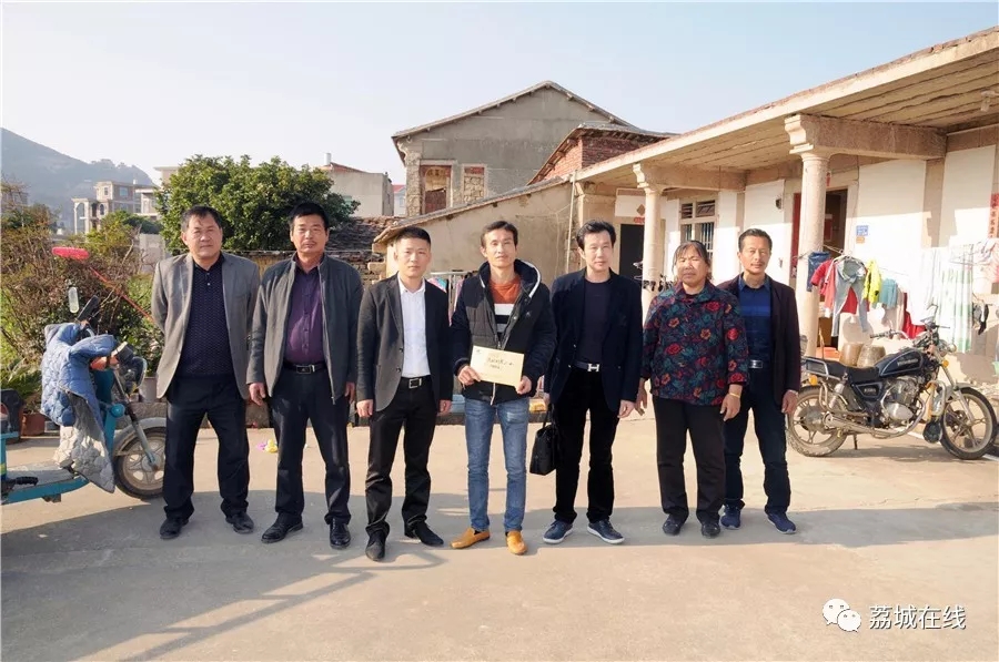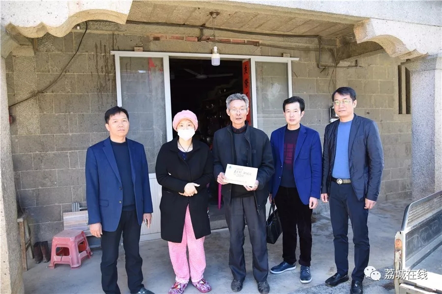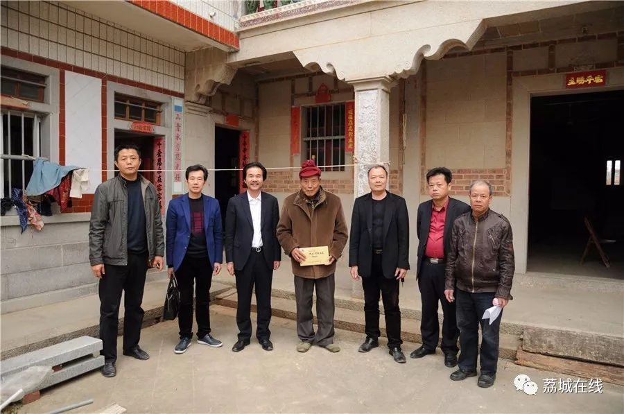 金大祥珠宝董事长翁志聪、区卫计局局长蔡键恒、金昌珠宝董事长陈金昌等代表促进会到呈山村慰问