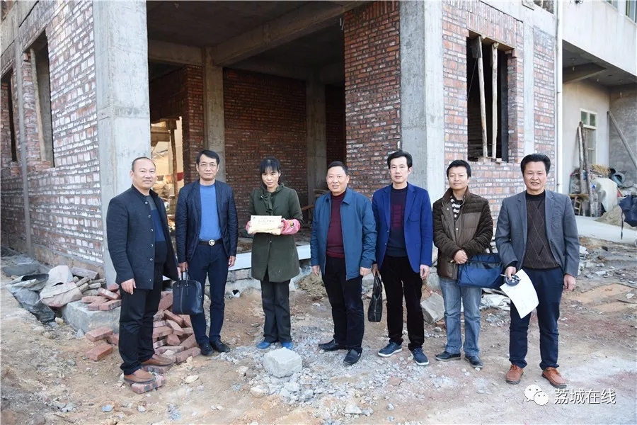 东风建筑董事长陈凤耀、区卫计局局长蔡键恒、金昌珠宝董事长陈金昌等代表促进会到坑园村慰问